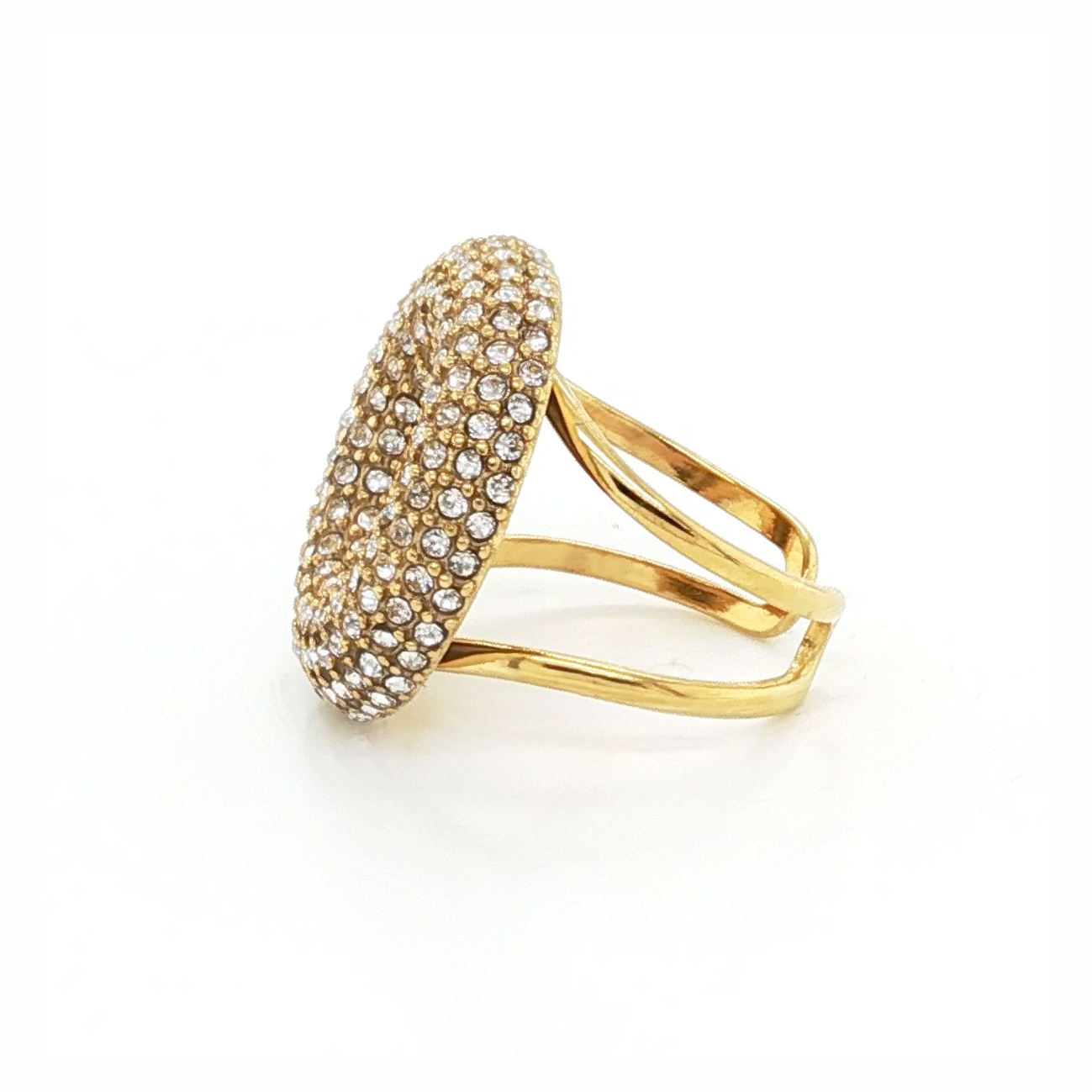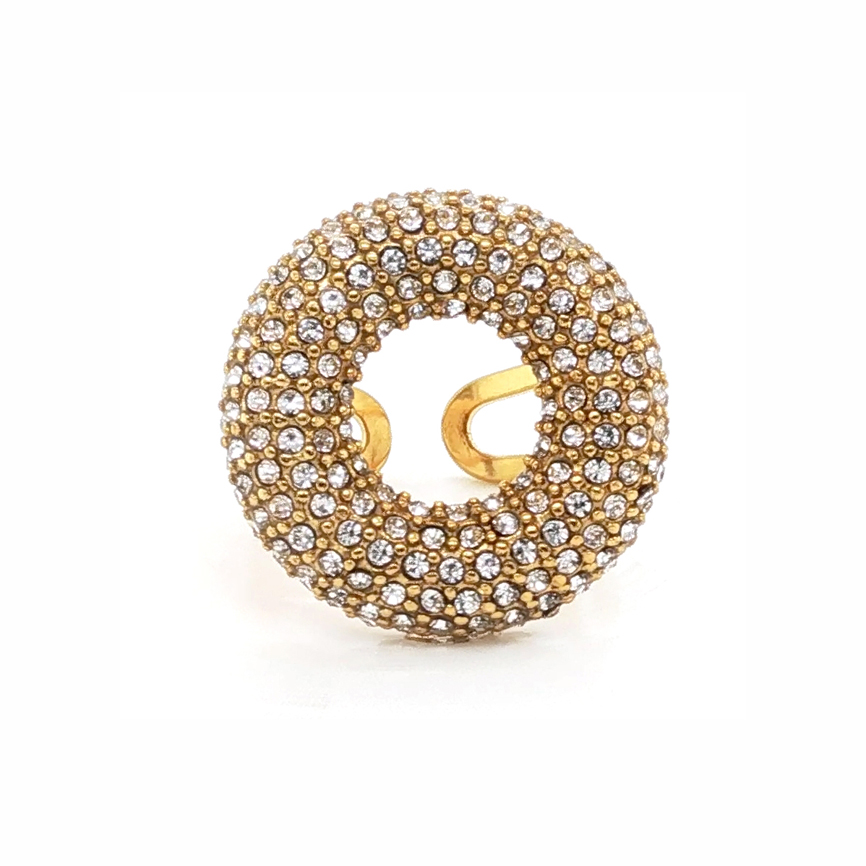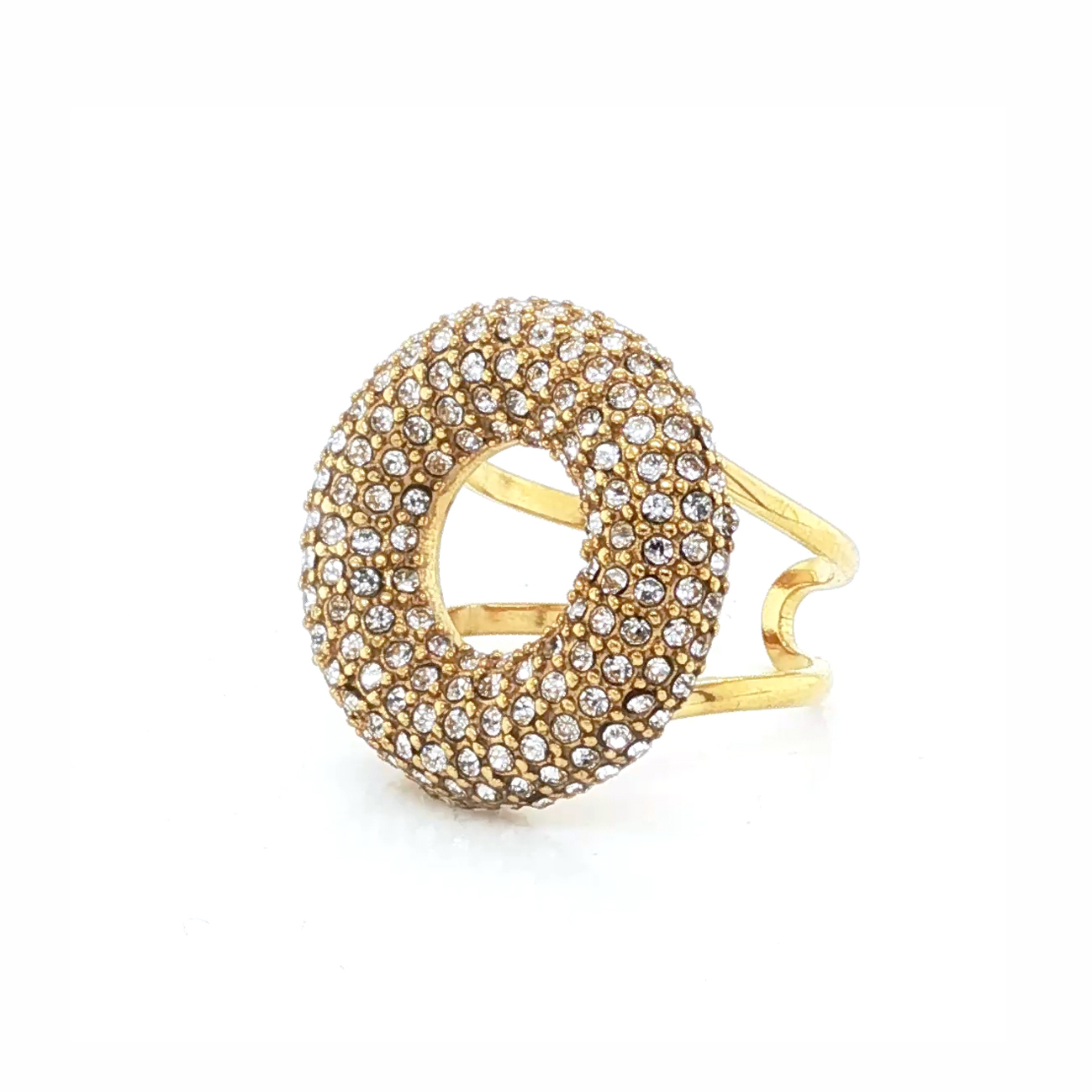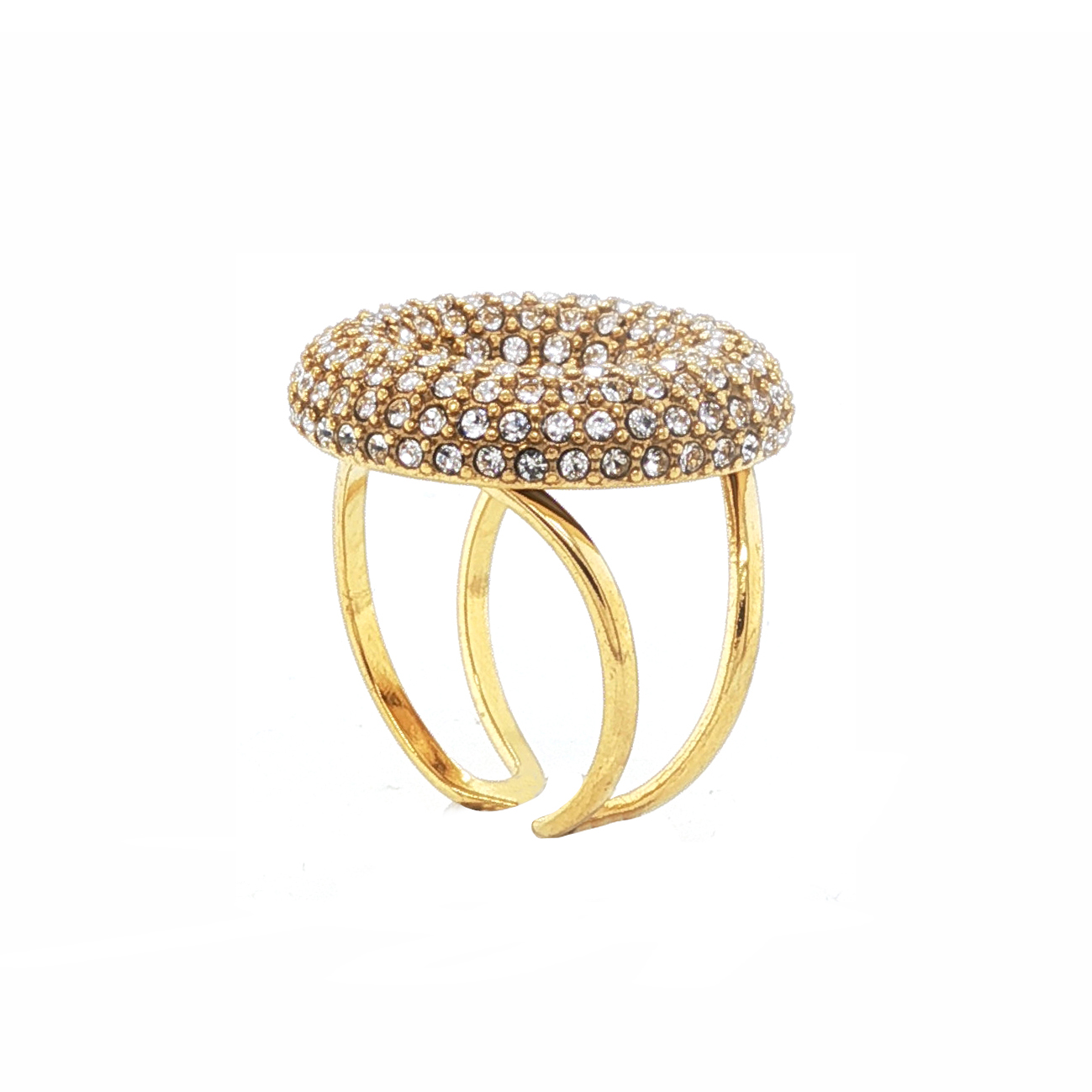ANEL, aço dourado, círculo com cristais, ajustável.