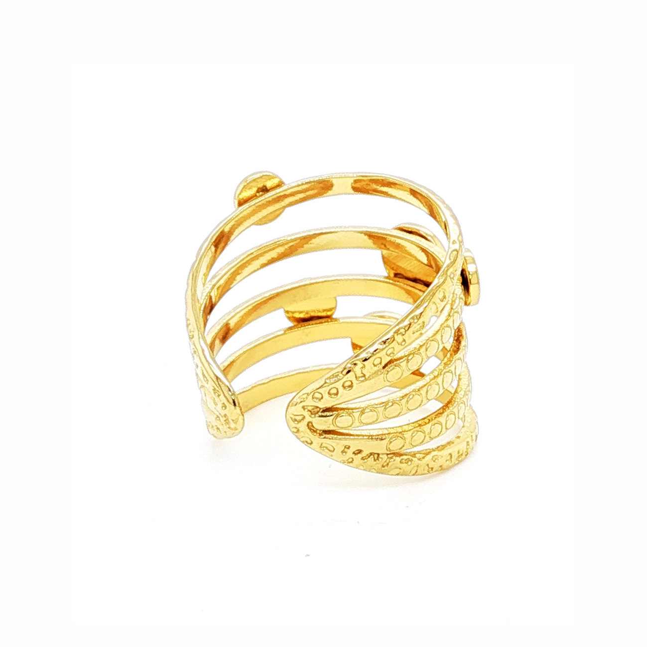ANEL, aço dourado, ajustável. Com chapinhas satinadas